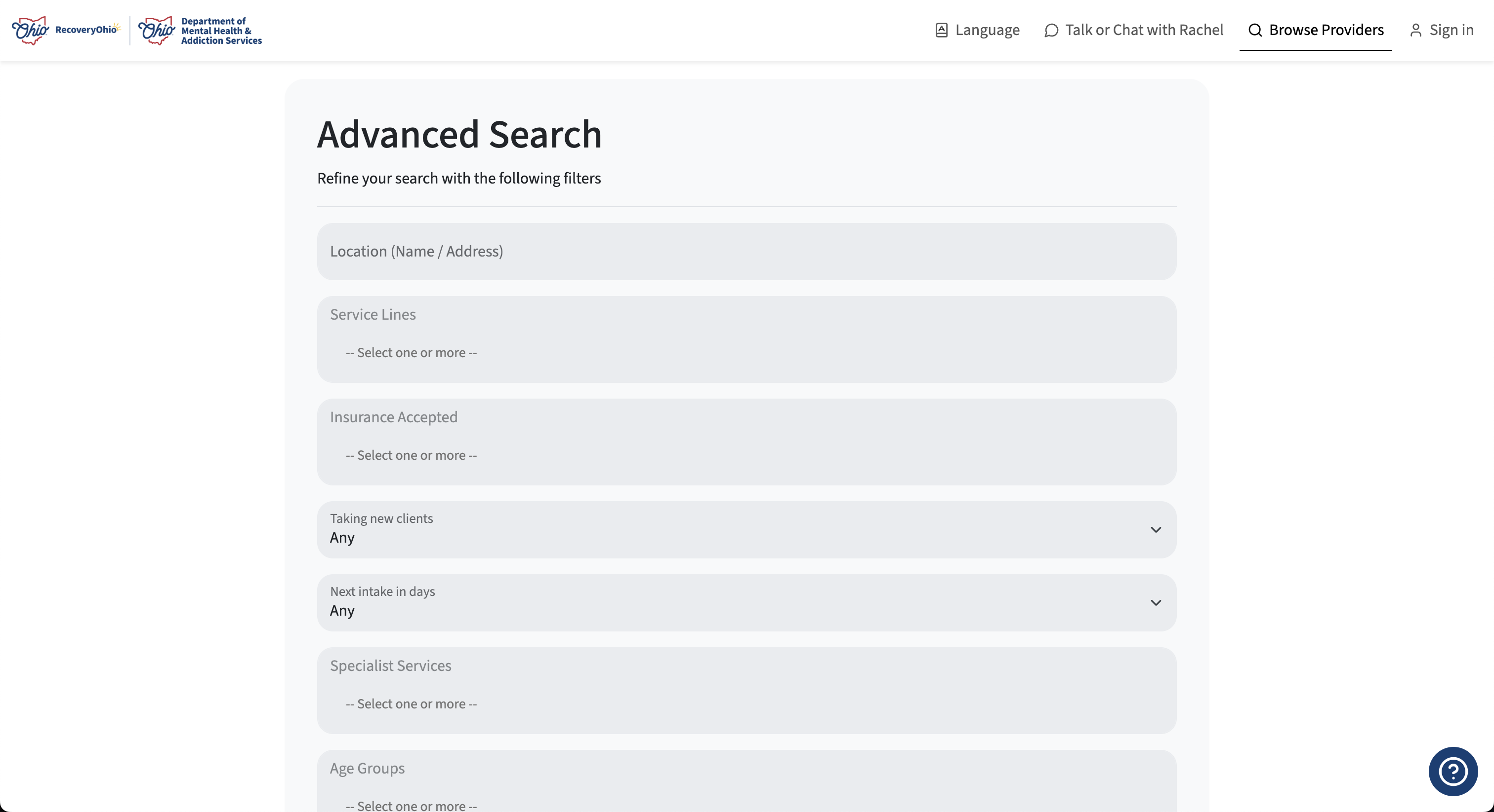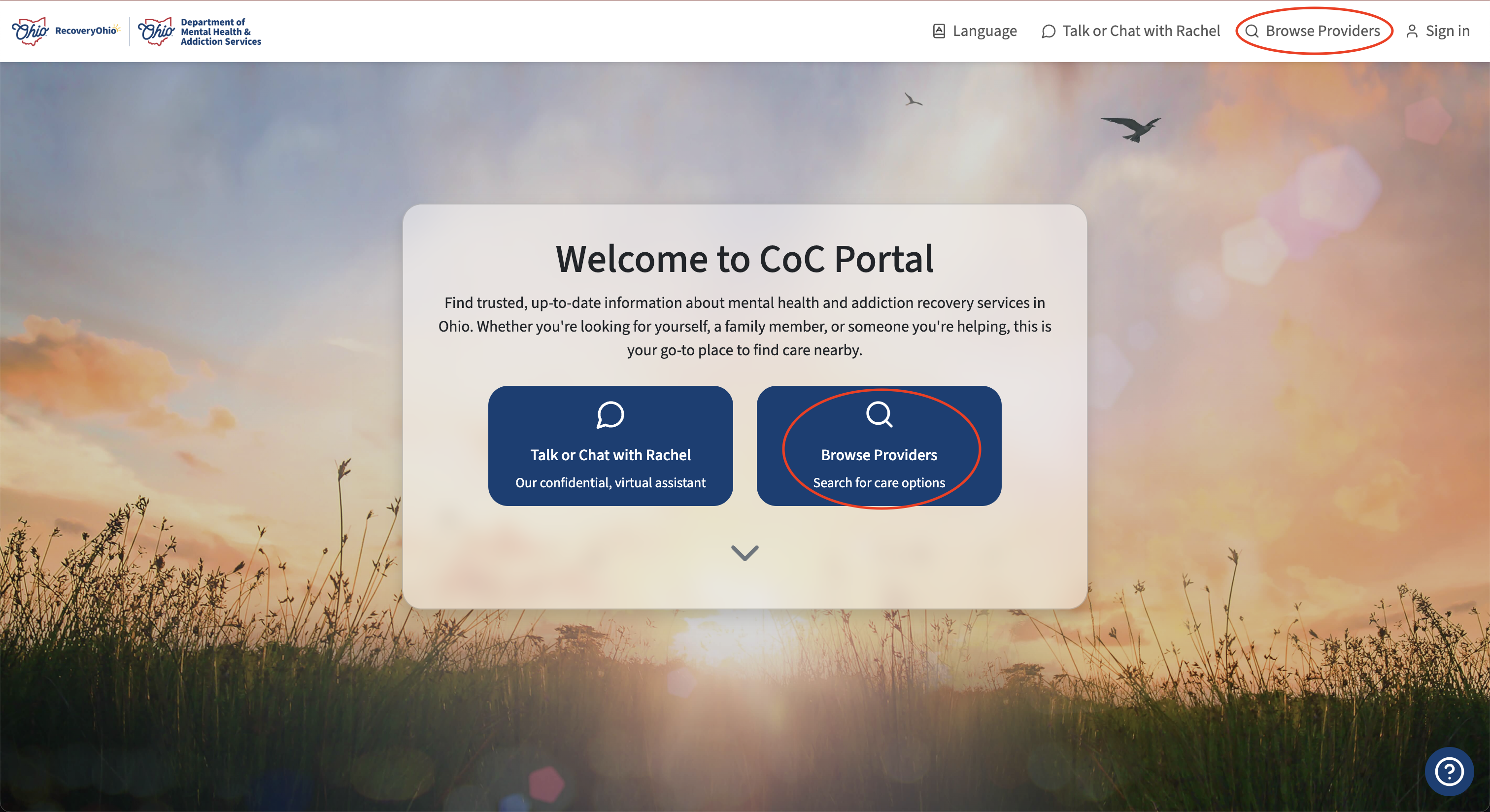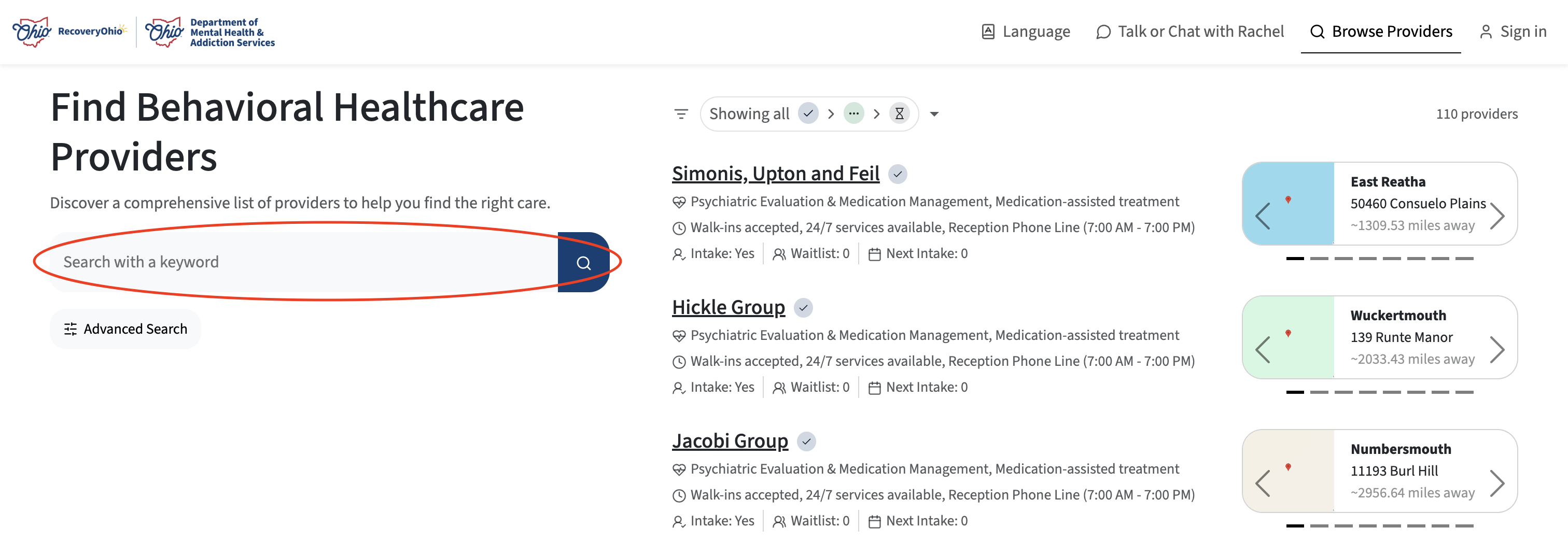 The RecoveryRachel is designed to help individuals, families, and professionals quickly find mental health and addiction recovery services across Ohio. There are two primary ways to navigate the portal: